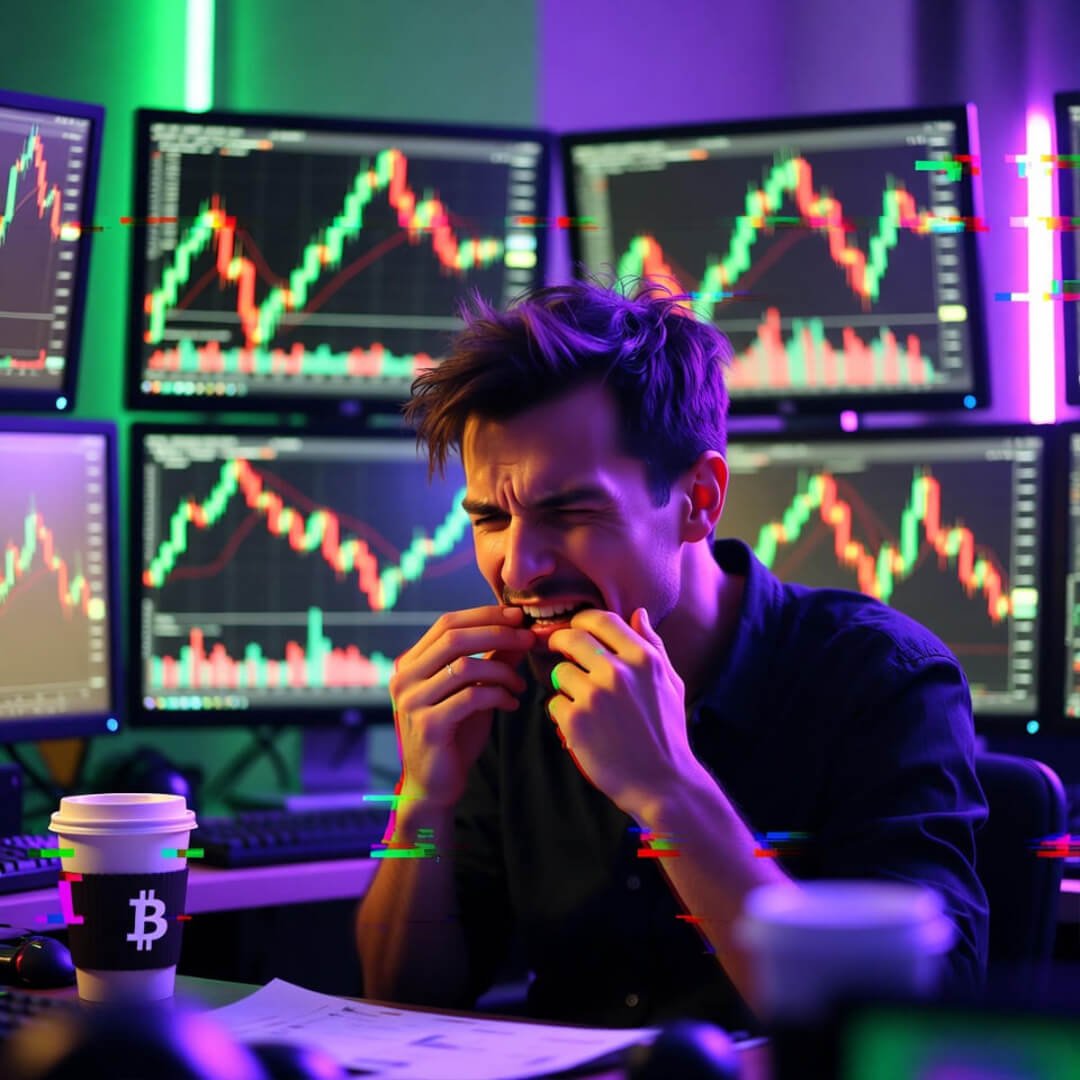 Stressed trader image] – Yeah, that’s literally me at 3 AM watching crypto prices today, coffee gone cold, nails destroyed.
